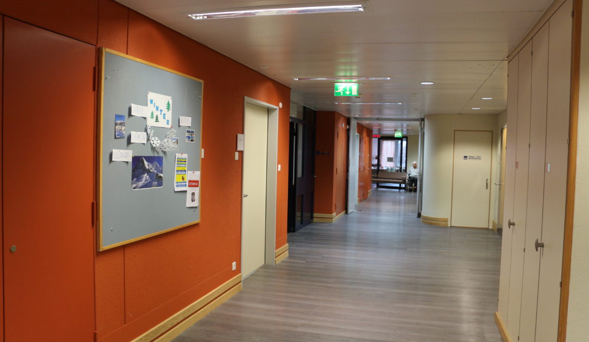 Auf den Pflegeabteilungen gibt es zwei Aufenthaltsräume. Im grosszügigen Aufenthaltsraum mit Küche werden Mahlzeiten gereicht und es finden Aktivierungsanlässe, wie u.a. gemeinsames Backen und Kochen statt. Im 1. OG (C1) führt die Tür aus dem Aufenthaltsraum in einen grosszügigen, geschützten Garten. Auf der zweiten Etage (C2) steht eine geschützte Terrasse zur Verfügung. Die Wohnzimmer sind gemeinschaftliche Räume, welche von allen unseren Bewohnenden genutzt werden. Ein weiterer, etwas kleinerer Aufenthaltsraum steht als Rückzugs- und Entspannungsort zur Verfügung. Pro Abteilung sind zwei Aufenthaltsräume vorhanden. Neben diesen Räumlichkeiten existieren weitere themen- und bedürfnisorientierte Rückzugsorte.